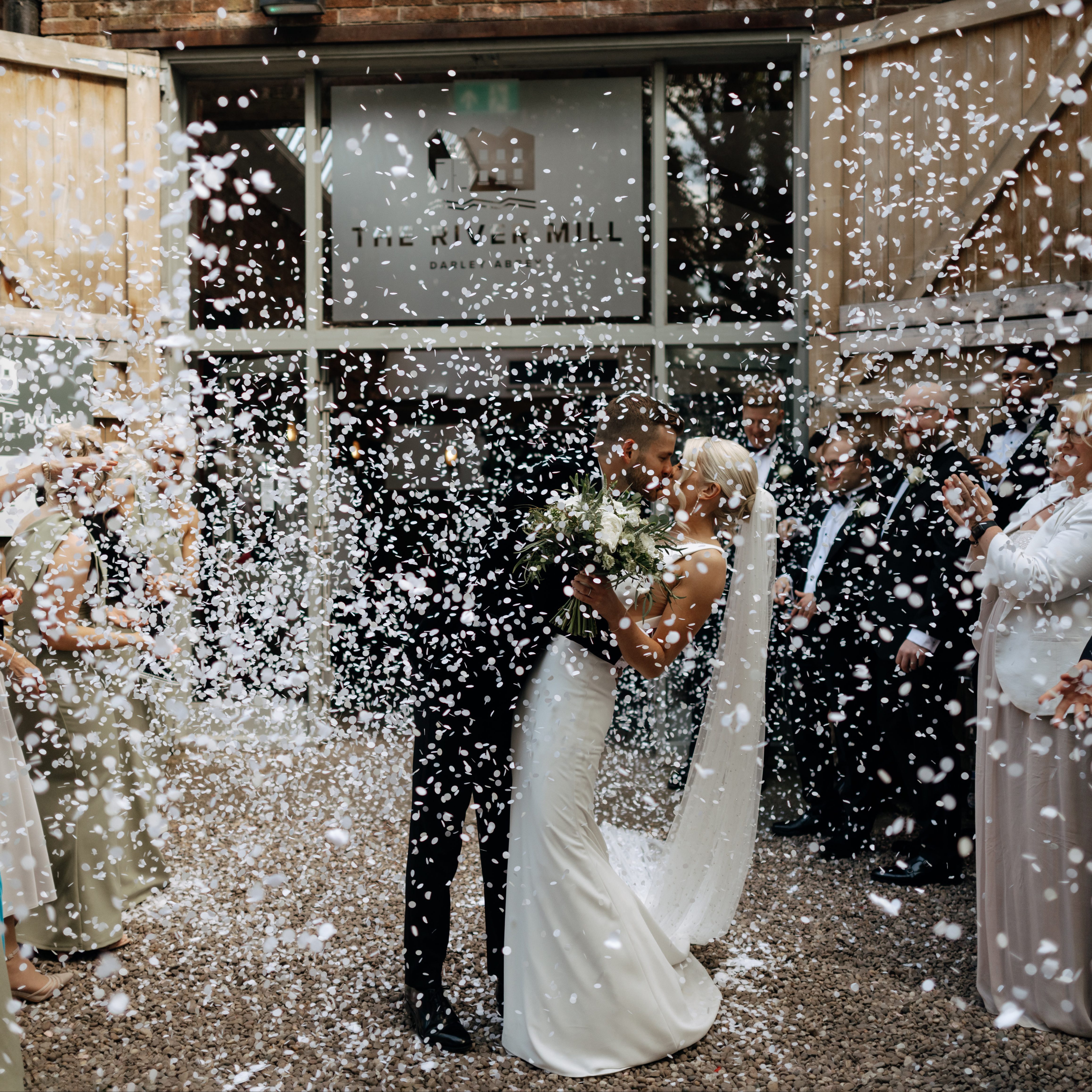 “We are so grateful to the River Mill for helping us create our perfect day! The venue was just amazing for what we wanted having a relatively intimate wedding, and we were so lucky to have good weather and use the beautiful river bank area. The industrial backdrop and areas around the mills was perfect for our golden hour shots too.